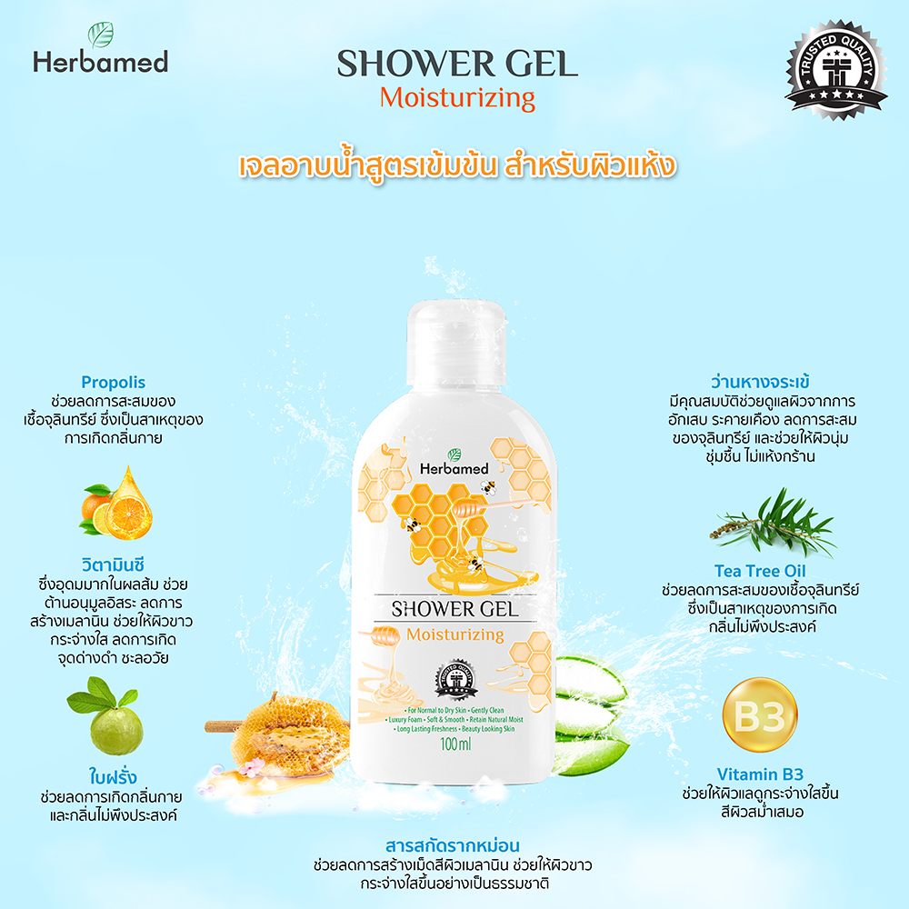 > ความงามและของใช้ใส่วนตัว > ผลิตภัณฑ์อาบน้ำและดู > ผลิตภัณฑ์อาบน้ำ > เฮอร์บาเมด มอยส์เจอร์ไรซิ่ง ชาวเวอร์ เจล 100มล.
