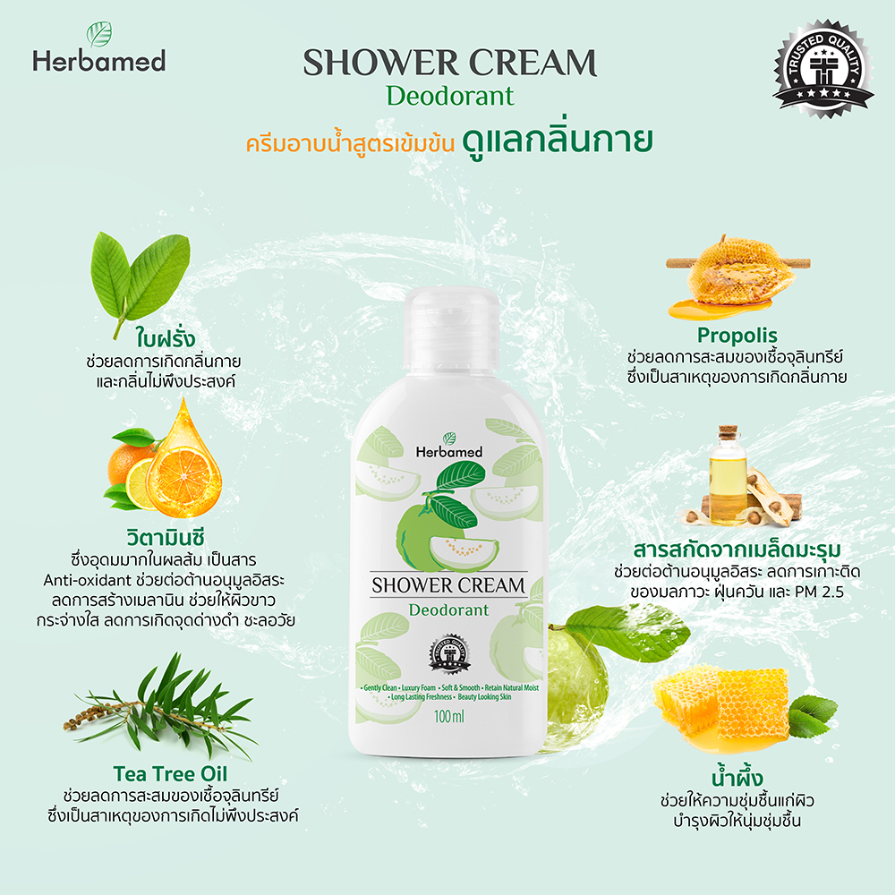 > ความงามและของใช้ใส่วนตัว > ผลิตภัณฑ์อาบน้ำและดู > ผลิตภัณฑ์อาบน้ำ > เฮอร์บาเมด ดีโอดรอแรนท์ ชาวเวอร์ ครีม 100มล.